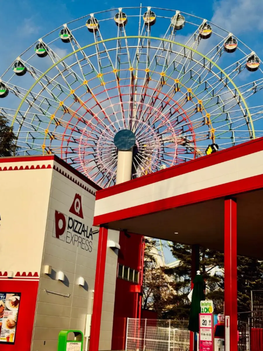 '후지산 뷰 페리스휠': 가족 모두가 함께 후지산을 배경으로 한 아름다운 풍경을 감상할 수 있는 놀이기구입니다.