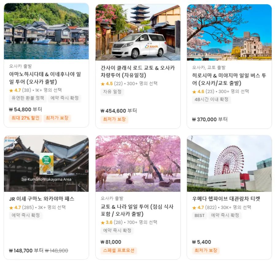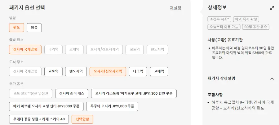 간사이 국제공항에서 교토/오사카/텐노지 교통편 JR 하루카 공항 특급열차 티켓은 클룩사이트에서 쉽게 예약하실 수 있으며, 현재 할인된 금액에 이용하실 수 있습니다. 내용 및 요금은 항상 변경될 수 있으니 예약사이트에서 정확한 내용을 확인하셔야 합니다.
