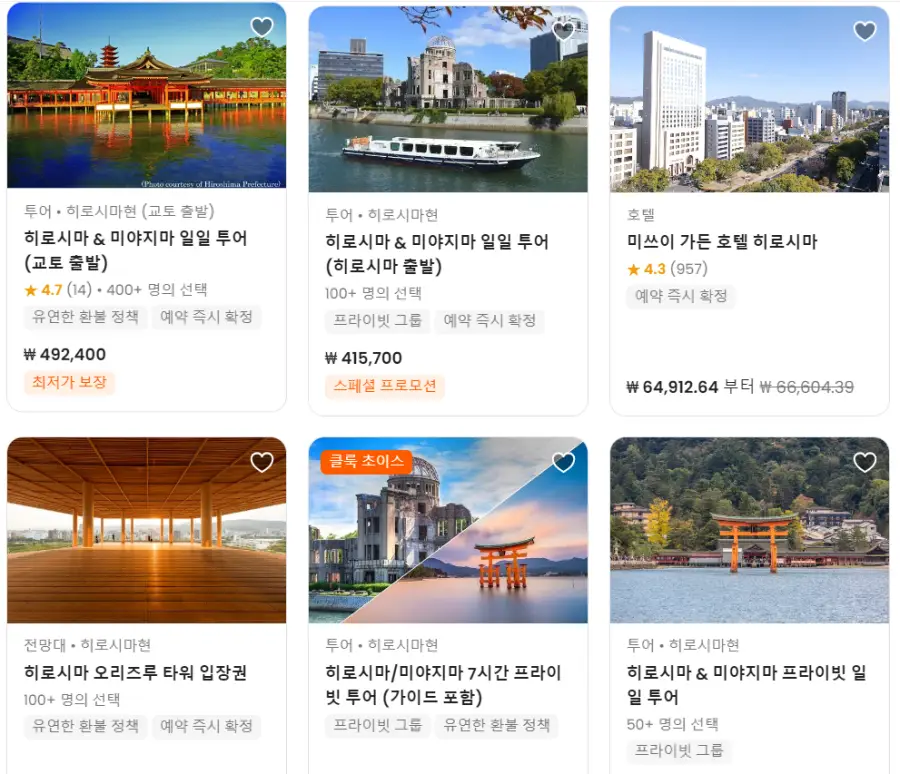 지역 특화: 히로시마와 야마구치 지역을 중점적으로 다루고 있어, 해당 지역을 체험하고 싶은 여행객에게 이상적입니다.