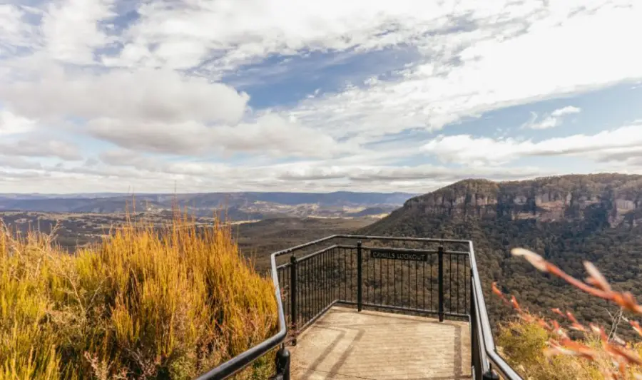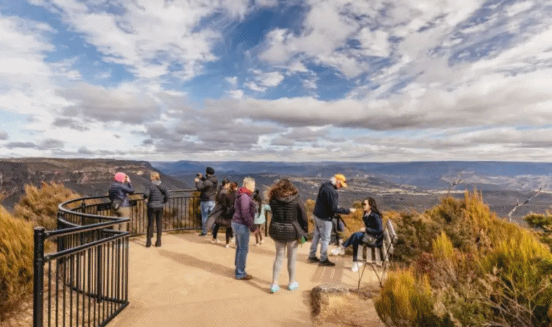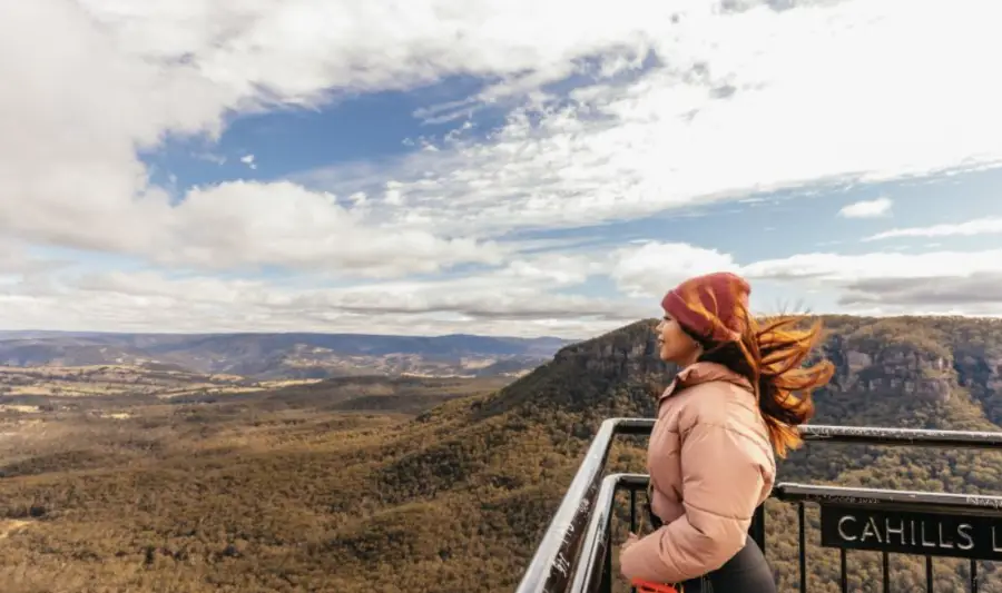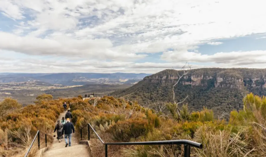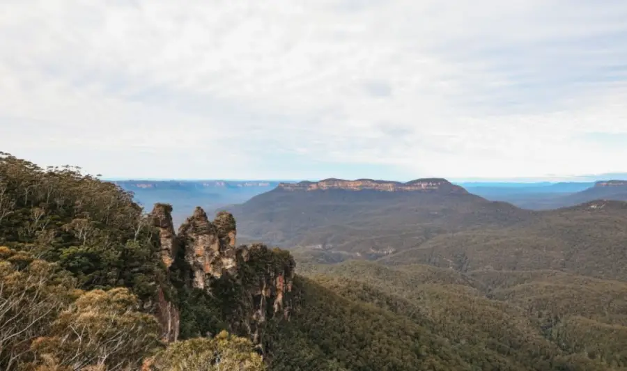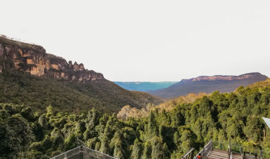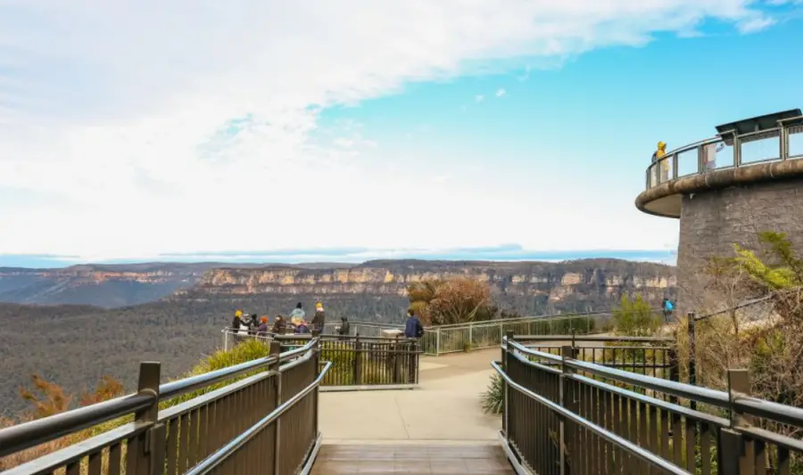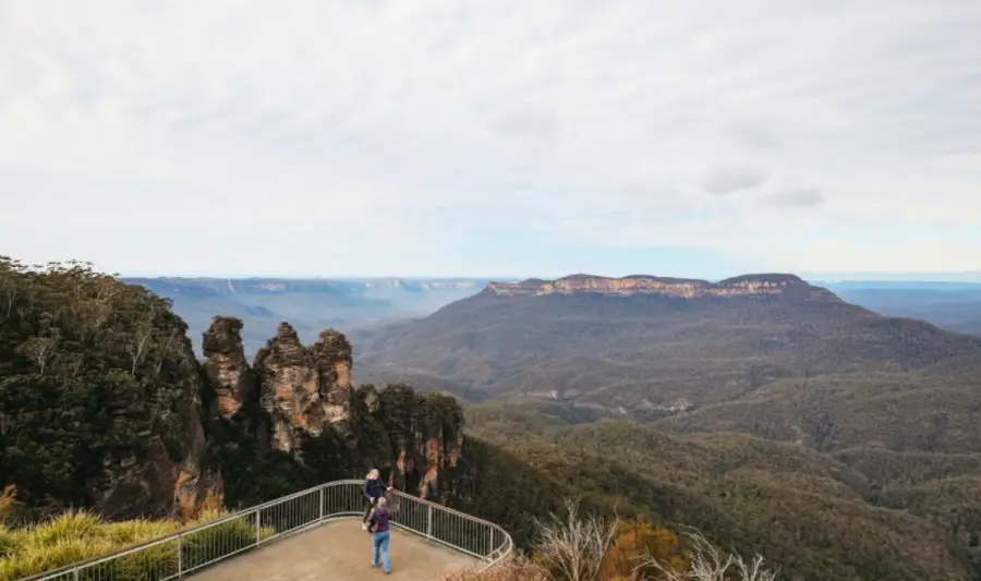 에코 포인트 룩아웃: 블루 마운틴의 대표적인 관광지로, '세 자매 봉(Three Sisters)'를 포함한 블루 마운틴 국립공원의 멋진 경치를 감상할 수 있습니다. 블루 마운틴의 '세 자매 봉(Three Sisters)'은 호주 뉴사우스웨일스 주의 대표적인 자연 명소로, 블루 마운틴 국립공원 내에 위치하고 있습니다. 세 자매 봉은 메오(Meehni, 922m), 위밍건(Wimlah, 918m), 그리고 군다딘(Gunnedoo, 906m)이라는 세 개의 바위 봉우리로 이루어져 있습니다.