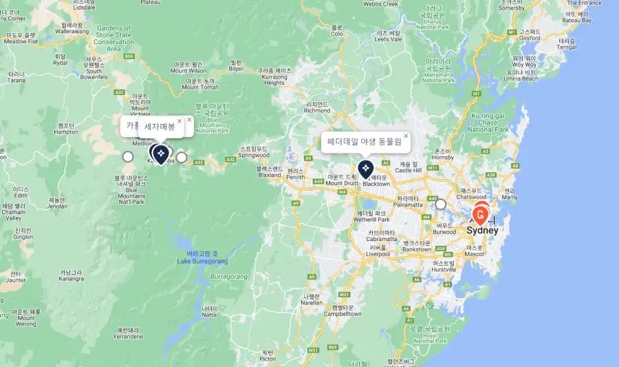 아래는 블루 마운틴여행의 가봐야하는 주요 명소들입니다.