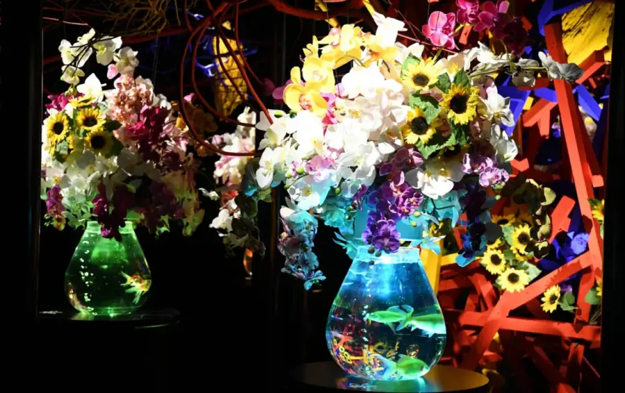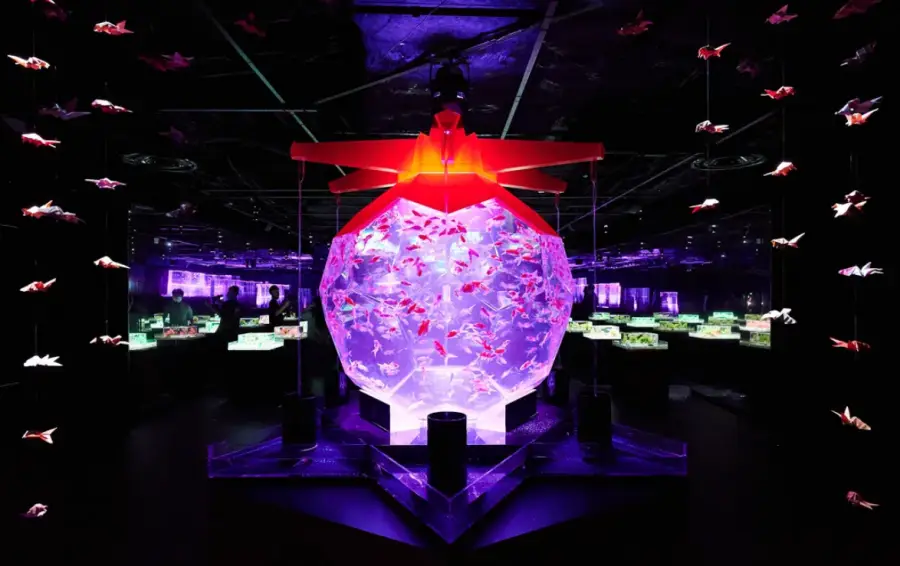 먼저, 물고기를 주요 주제로 한 디지털 아트 작품들이 있습니다. 물고기의 움직임, 색깔, 형태 등을 예술적으로 표현한 이 작품들은 방문객들에게 신선한 느낌을 줍니다. 특히, 일본의 전통적인 물고기인 네모니라와 금붕어를 활용한 작품들은 일본의 아름다움과 전통을 느낄 수 있게 합니다.