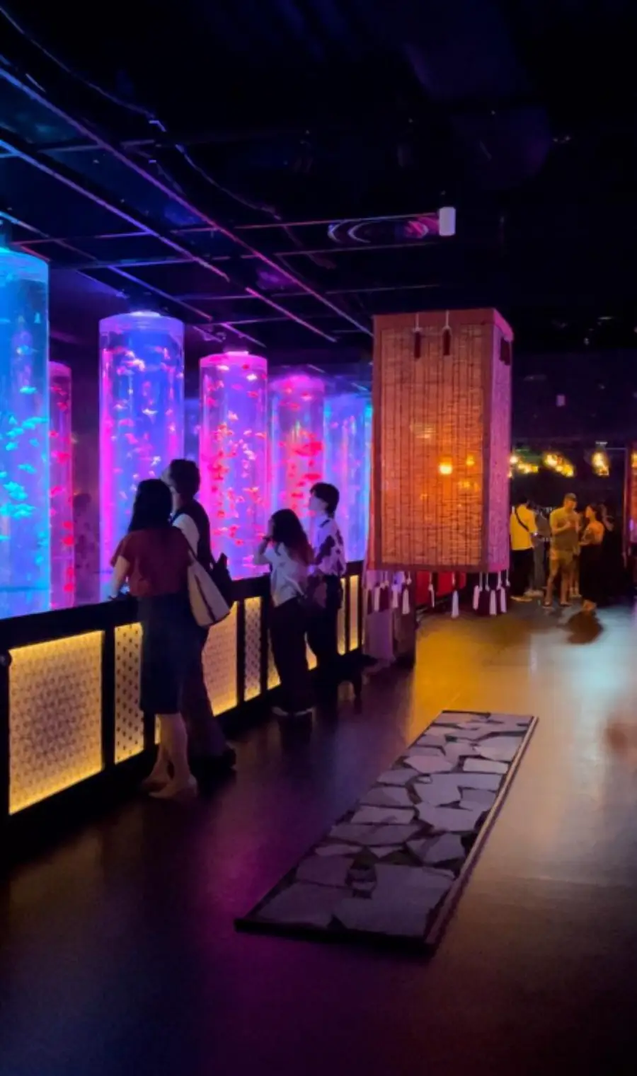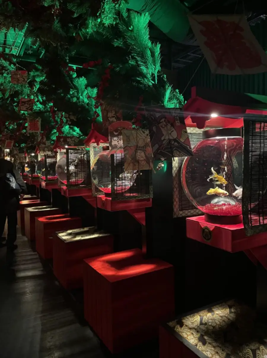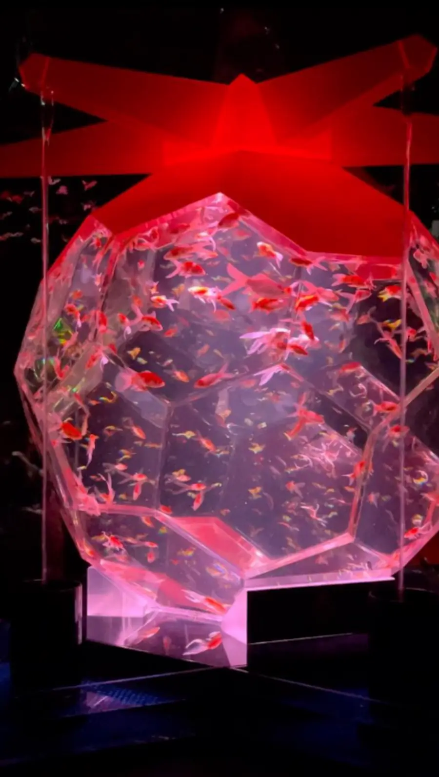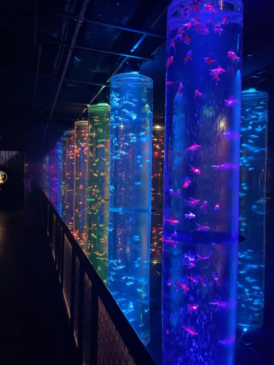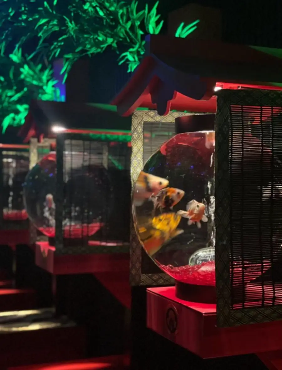 음악은 금붕어의 움직임과 함께 흐르는 데, 이는 금붕어가 마치 음악에 맞춰 춤을 추는 것처럼 보이게 합니다. 이런 요소는 금붕어의 우아한 움직임을 강조하고, 방문객들에게 감각적인 경험을 제공합니다.