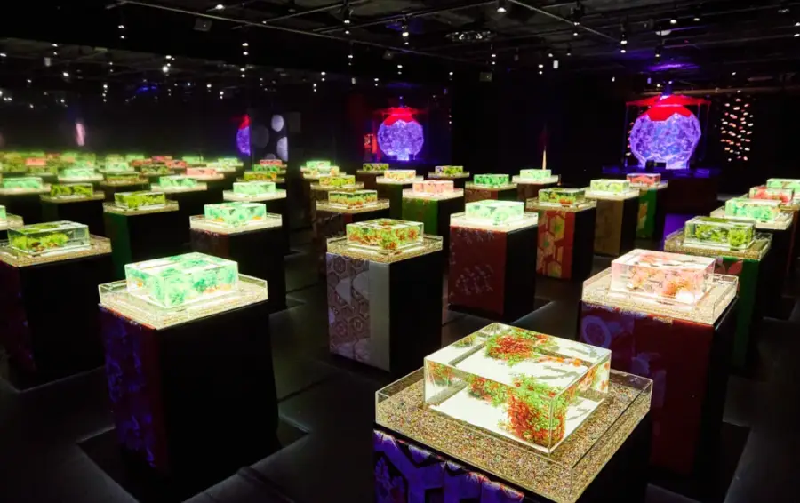 아트 아쿠아리움 미술관에서 가장 인기 있는 작품 중 하나는 '금붕어와 함께하는 아트 아쿠아리움'입니다. 이 작품은 일본의 전통적인 물고기인 금붕어를 주요 주제로 하고 있으며, 금붕어의 아름다움과 우아함을 조명과 음악을 통해 표현하고 있습니다.