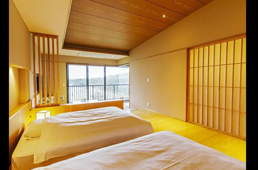 현대식으로 만든 료칸 바다가 보이는 룸 룸 안에 욕조는 폴딩도어를 열면 야외 욕조가 됨 공용목욕탕에서 보는 풍경도 일품임 저녁식사는 꼭 한번 먹어보길 추천 가격이 싸진 않지만 여유로운 현대식의 료칸 원하면 들려 보시길