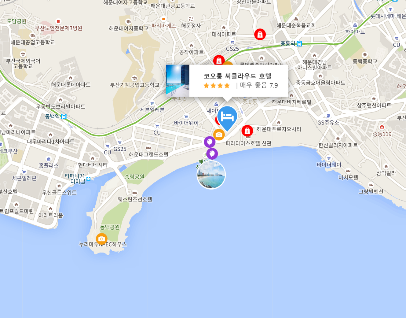 부산에서 여행하기 편리한 숙소를 찾고 계신다면 코오롱 씨클라우드 호텔 (Kolon Seacloud Hotel)만큼 좋은 곳은 없습니다. 본 4성급 숙소는 공항에서 단 28. Km 거리에 있어 쉽게 이동할 수 있습니다.코오롱 씨클라우드 호텔 (Kolon Seacloud Hotel)은 해운대 시장, 해운대 시장, 파라다이스 면세점 서면점 등과 같은 도시의 주요 명소들과 가까운 거리에 있어 투숙객이 편리한 여행을 즐길 수 있습니다.