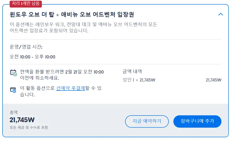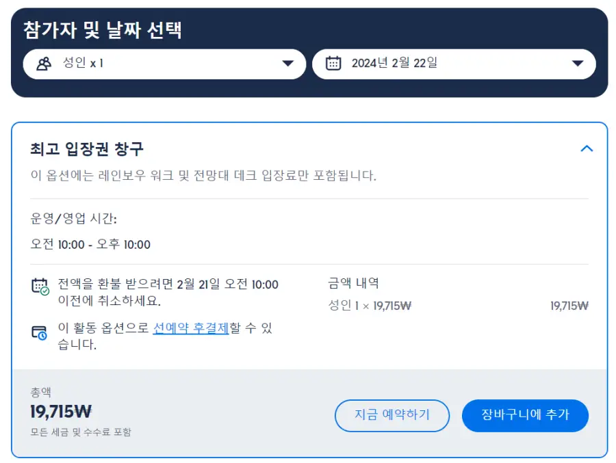 레인보우 워크 및 전망대 데크 입장료