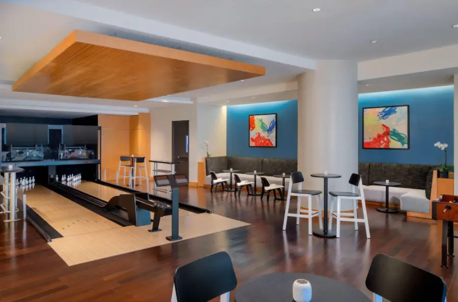 볼링, 골프, 수영장 및 위치 편의시설 및 시설