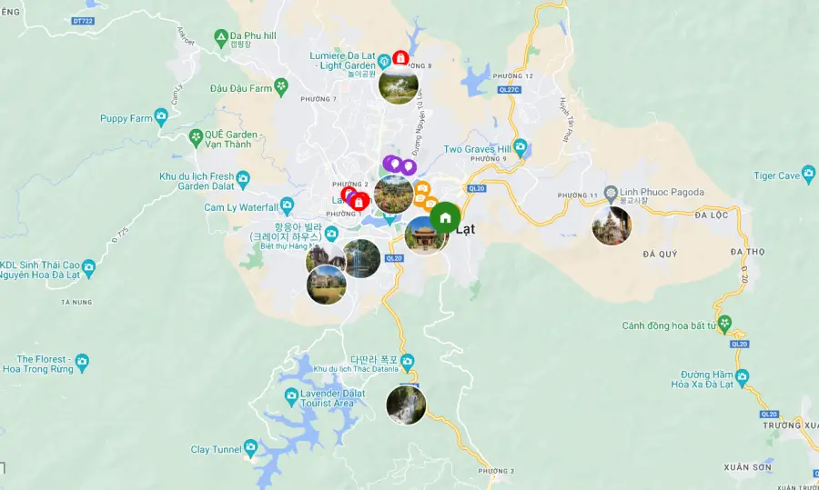 달랏 (dalat)은 베트남의 람 동성의 수도입니다. 달랏은 아름다운 프랑스 빌라, 신선한 공기, 아름다운 폭포, 화려한 호수가 있는 꽃과 자연의 아름다움을 느끼기 좋은 여행의 도시입니다. 달랏의