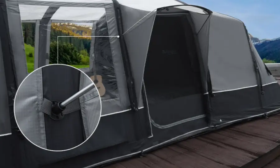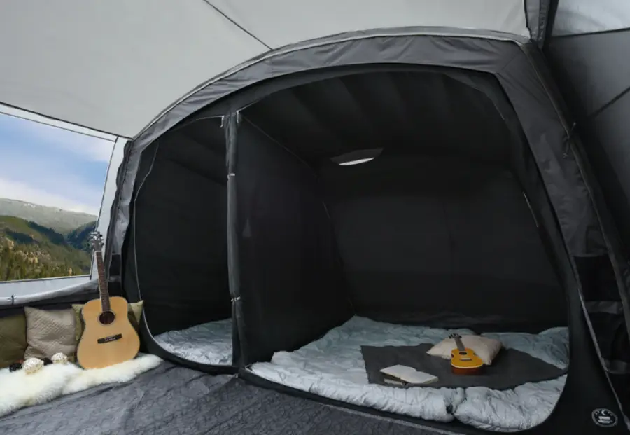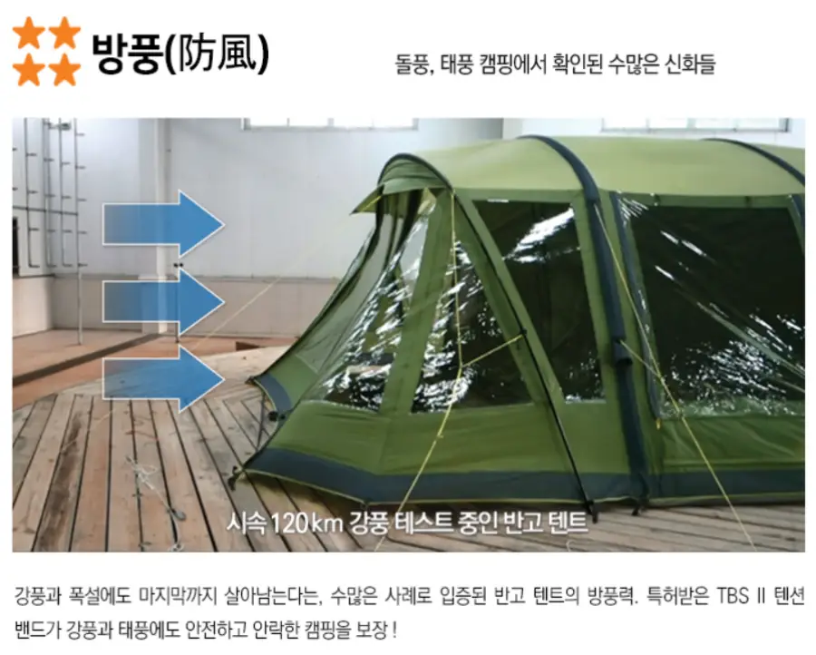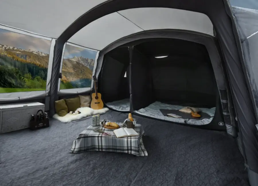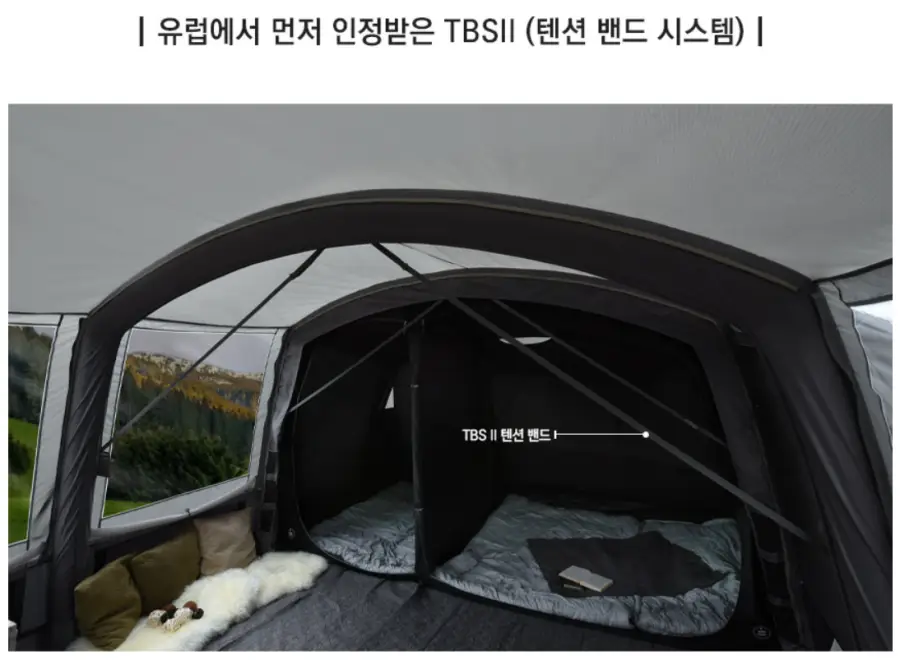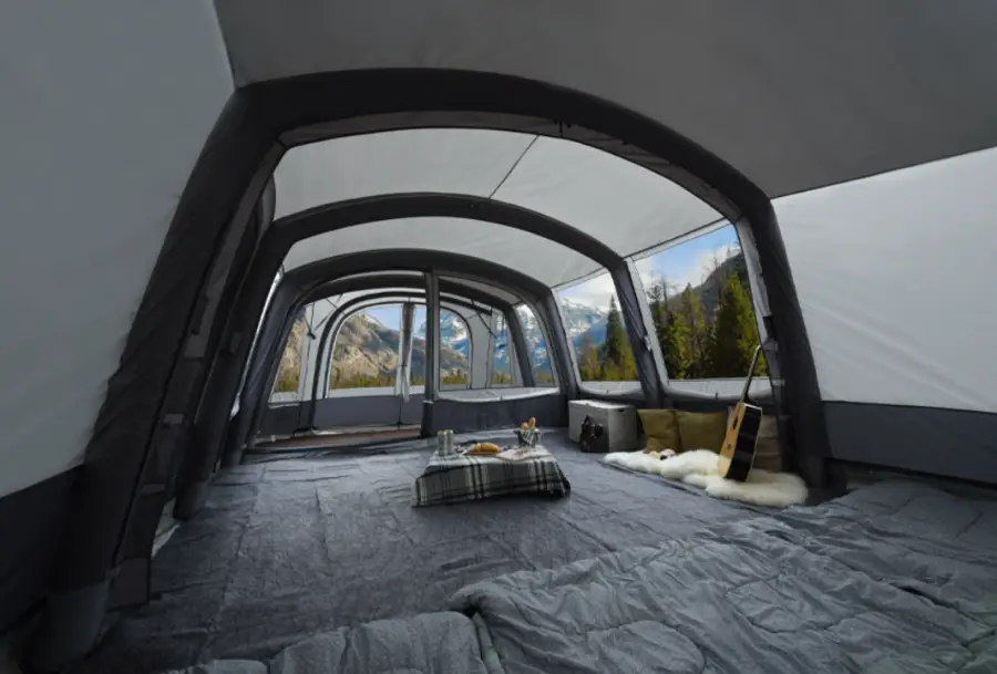 에어텐트: 전통적인 텐트보다 훨씬 빠르고 간편하게 설치할 수 있는 에어텐트입니다. 포함된 펌프를 이용해 공기를 주입함으로써 쉽게 텐트를 세울 수 있습니다. 이는 특히 캠핑 초보자들에게 큰 도움이 됩니다.