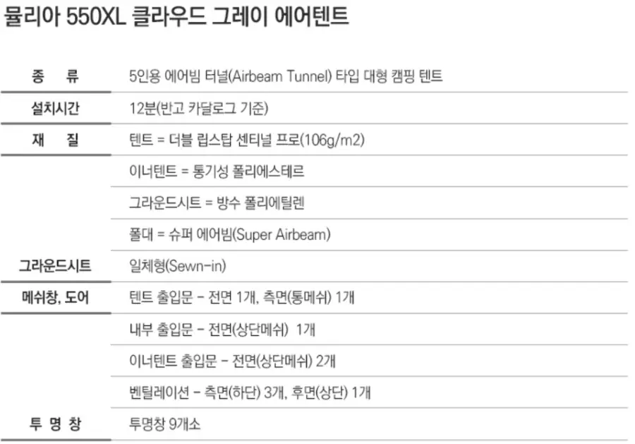 반고 뮬리아 550XL 클라우드 그레이 에어텐트 장점 정리