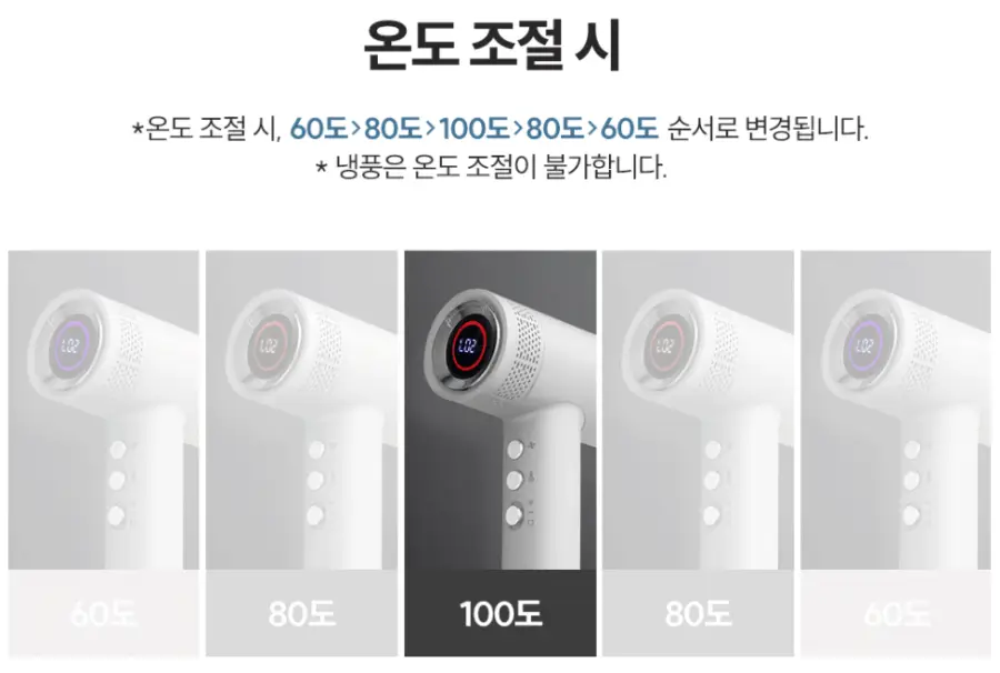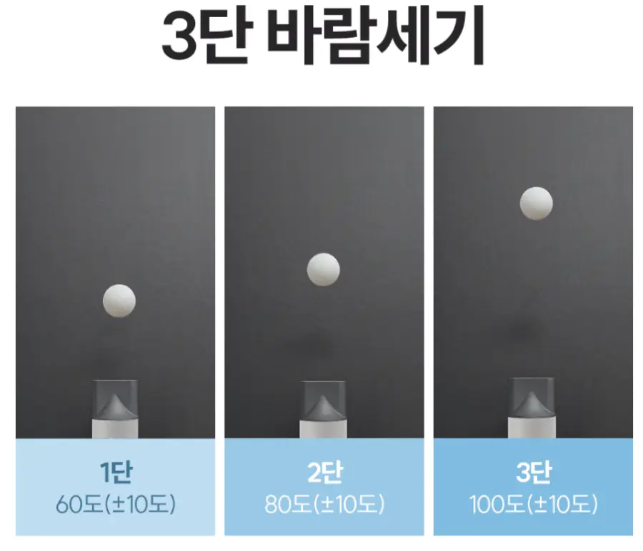 다양한 열과 풍량 조절: 이 제품은 3단계의 열 조절과 3단계의 풍량 조절이 가능하여, 사용자의 헤어 타입과 상황에 따라 적절한 세팅을 선택할 수 있습니다.