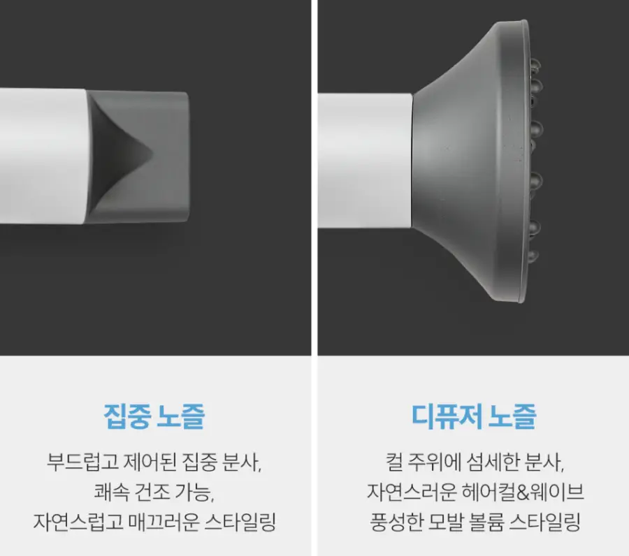 다양한 액세서리: 이지블로우 드라이기는 노즐과 디퓨저를 제공하여, 머리 모양과 스타일에 따라 다양하게 활용할 수 있습니다.