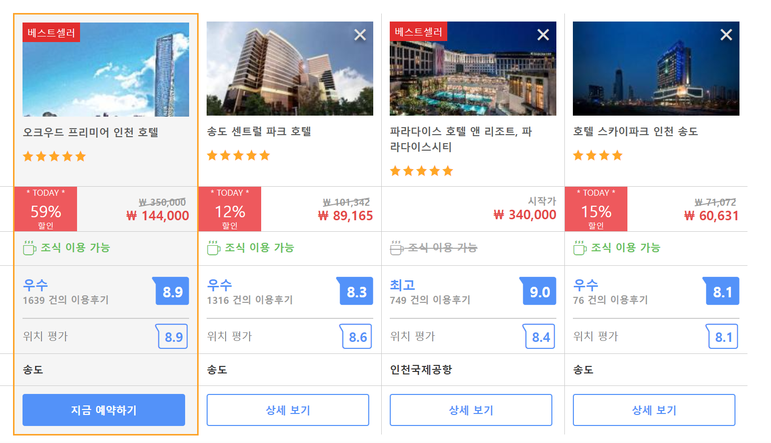 오크우드 프리미어 인천 호텔 후기 모음(Oakwood Premier Incheon Hotel)의 최저 가격대는 아고다에서 할인특가 가격으로 매일매일 변동되며 20만원대부터 다양하게 형성됩니다. 아고다 최저가를 확인하시려면 아래 링크를 누르시면 원하는 날짜의 가격대를 자세히 보실 수 있습니다.