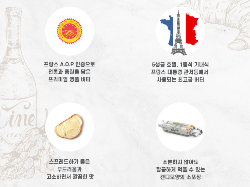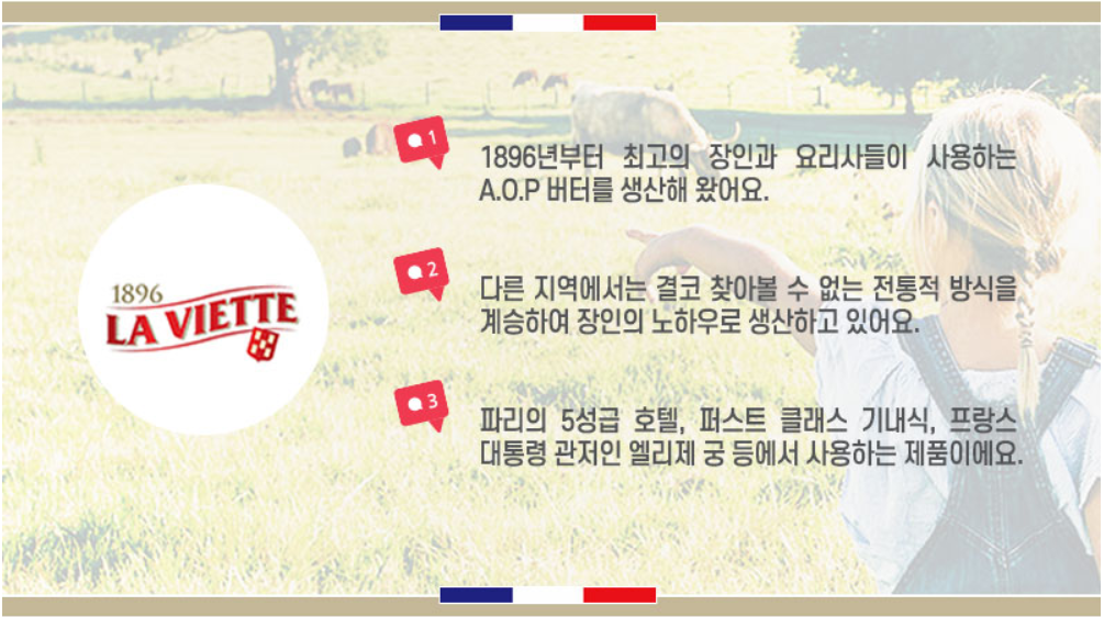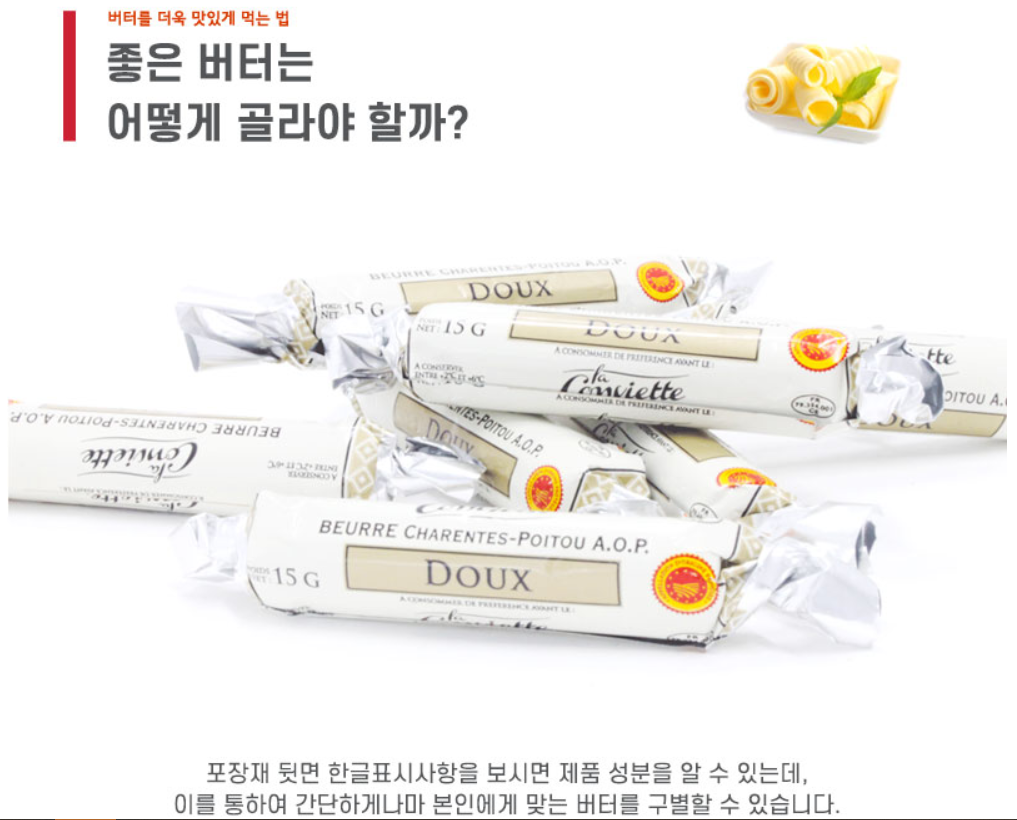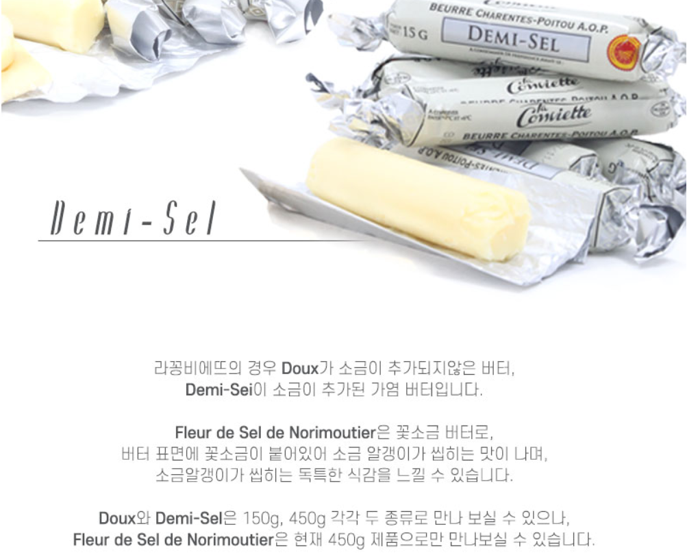 라꽁비에뜨 버터는 현재 저렴한가격에 판매하고 있어 더욱 매리트 있는 제품으로 할인이벤트는 기간에 따라 조기마감할 수 있고 예고없이 가격이나 할인율이 변동될 수 있습니다. 망설이면 비싸져요~ 지금사면 저렴하게 득템할 찬스입니다.