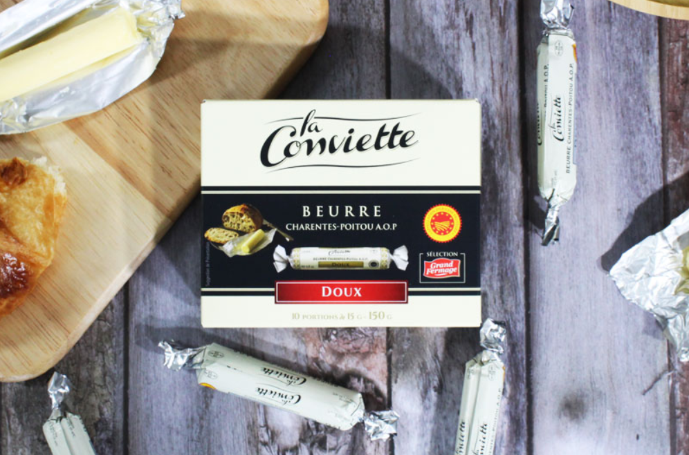 라꽁비에뜨(La Conviette) 버터는 프랑스에서 생산되는 고급 버터 중 하나로 여러 가지 독특한 특징과 장점을 가지고 있습니다. 이 버터는 세계적으로 인정받는 맛과 품질 덕분에 요리사들과 제과 제빵사들 사이에서 특히 선호됩니다. 다음은 라꽁비에뜨 버터의 주요 특징들입니다:
