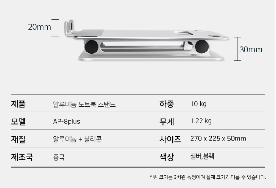 재질: AP-8 Plus는 고급 알루미늄 소재로 제작되어, 견고함과 동시에 스타일리시한 외관을 자랑합니다. 알루미늄은 열 전도율이 높아 노트북의 열 배출을 효과적으로 돕는 장점이 있습니다.