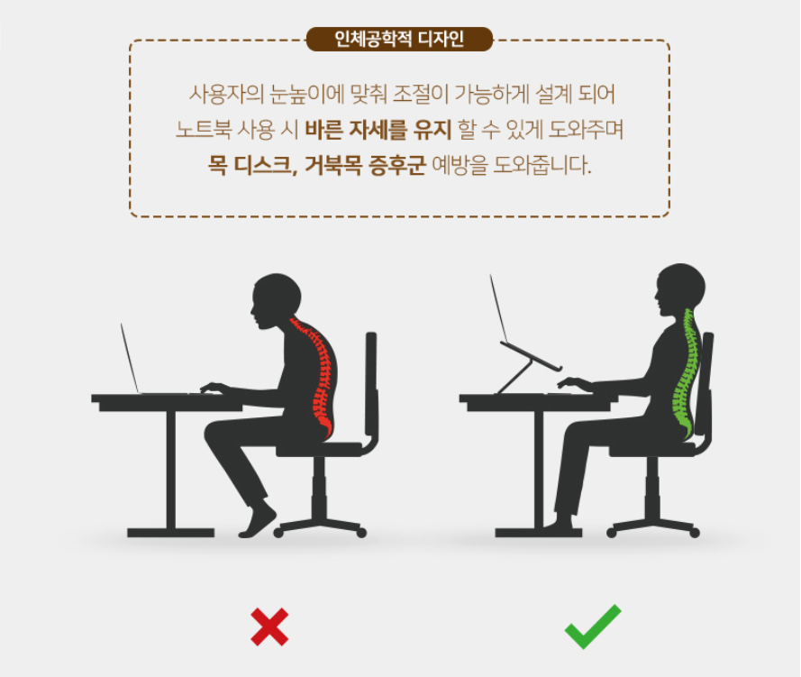 자세 개선: 적절한 높이와 각도 조절을 통해 사용자는 더 나은 자세로 작업할 수 있게 되며, 이는 장기적으로 건강한 작업 환경을 조성합니다.