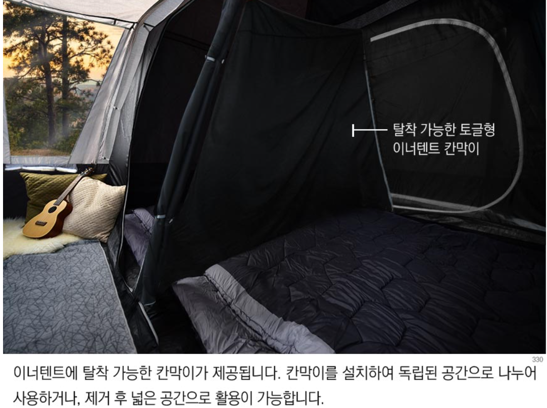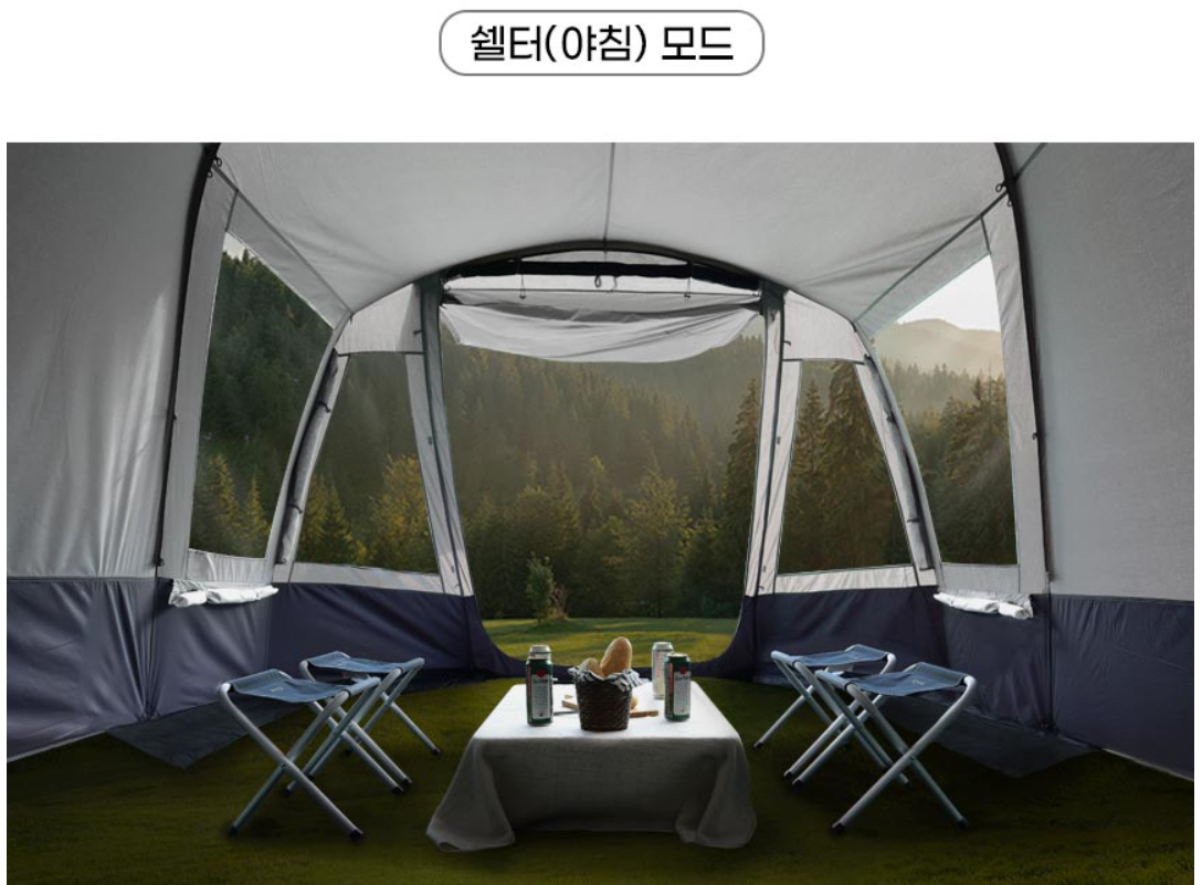 빠르고 간편한 설치 에어텐트/ 캠핑여행에 추천하는 최대 5~6명까지 수용 가능한 넓은 공간 반고