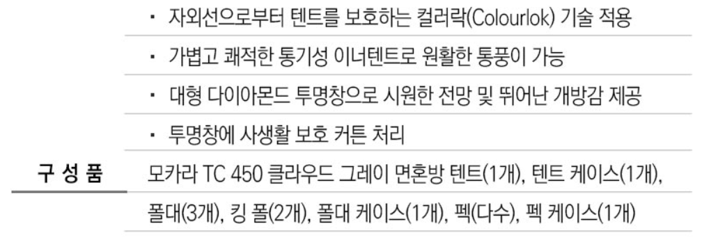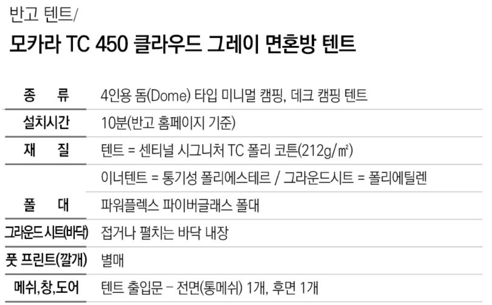 캠핑여행 / 캠핑텐트로 추천하는 혁신적인 디자인과 품질로 많은 캠핑 애호가들 사이에서 인기를 끌고 있는 모카라 TC 450 면혼방 4인용텐트