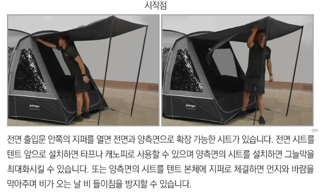설치: 반고의 텐트는 설치가 간편하다는 것이 큰 장점 중 하나입니다. 모카라 TC 450도 예외는 아니며, 몇 단계의 간단한 절차만으로 쉽게 설치할 수 있습니다. 이는 캠핑 초보자들에게도 큰 도움이 됩니다.