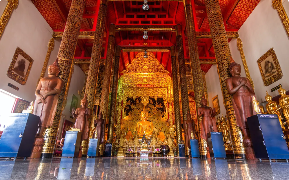 친근한 후피동물과의 외출 후에는 왓 반 덴(Wat Ban Den)으로 향합니다. 이 드넓은 수도원 단지에는 조디악 표지판을 나타내는 여러 개의 탑이 있습니다. 형형색색의 불교 사원을 돌아다니며 복잡한 디자인에 감탄한 후 종점으로 향합니다.
