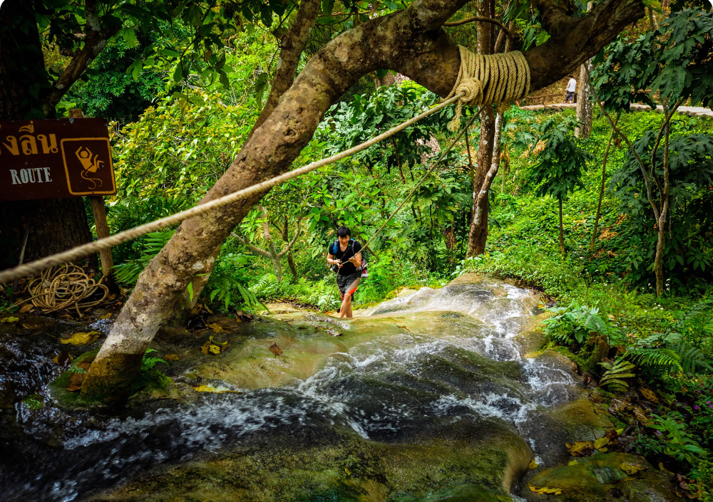 부아통 폭포는 태국 북부에 위치해 있으며, 'Sticky Waterfalls'라고도 불리는데, 이는 폭포의 독특한 특성 때문입니다. 폭포의 바위는 특별한 종류의 이끼로 덮여 있어, 물이 흐르는데도 불구하고 미끄럽지 않아 사람들이 쉽게 올라갈 수 있습니다. 이러한 특성 덕분에 방문객들은 폭포를 직접 오르면서 자연과 더 가까워질 수 있는 독특한 경험을 할 수 있습니다.
