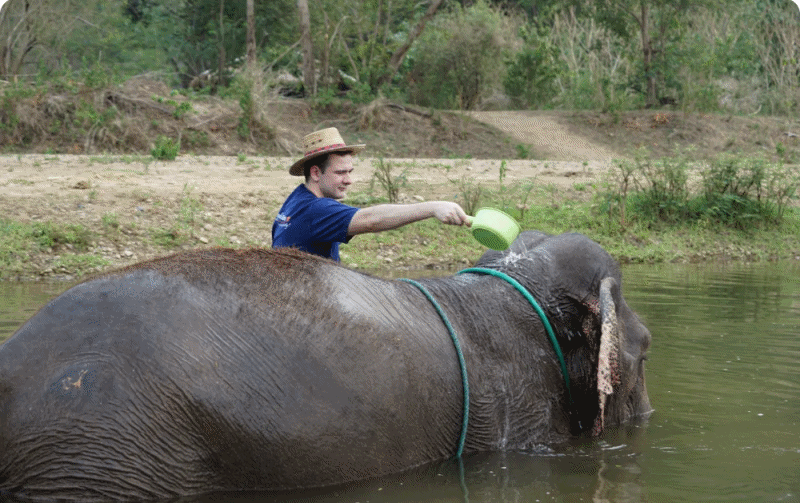 도착하면 코끼리를 위한 음식을 준비하고 먹이를 주기 전에 소개 및 안전 브리핑에 참여하게 됩니다. 그런 다음 샤워를 하고 점심을 먹으러 가기 전에 근처 강에서 목욕 시간을 함께 할 수 있습니다.