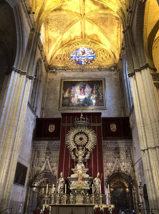 알타르 조각상과 장식: 세비야 대성당의 주요 제단(Altar Mayor)은 깊은 인상을 주는 목조 조각으로 유명합니다. 피에트로 다 코르토나(Pietro da Cortona)에 의해 제작된 이 제단은 성경의 여러 장면을 묘사하는 상세한 조각들로 구성되어 있습니다. 이 조각상들은 세밀한 장식과 함께 기독교 이야기를 생생하게 전달합니다.