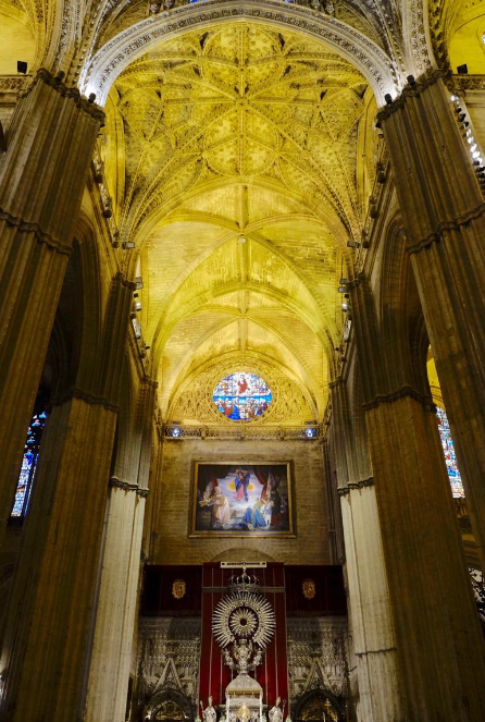 고딕 양식의 특징: 고딕 양식의 대표적인 특징 중 하나는 높이 솟은 아치와 첨탑입니다. 세비야 대성당은 그 규모와 높이에서도 고딕 양식의 특성을 잘 드러내고 있습니다. 고딕 양식은 하늘을 향해 솟아오르는 듯한 시각적 효과를 주며, 이는 종교적 상징성을 내포하고 있습니다. 신성함과 영적인 도약을 시각적으로 표현하는 것이죠.