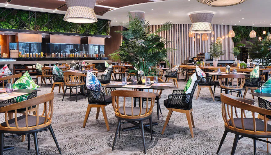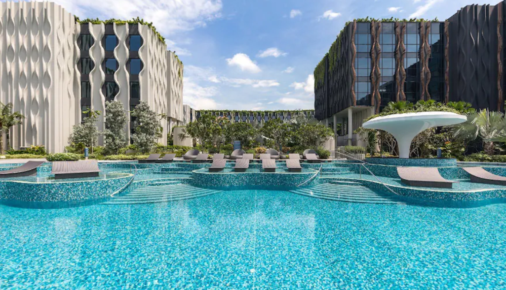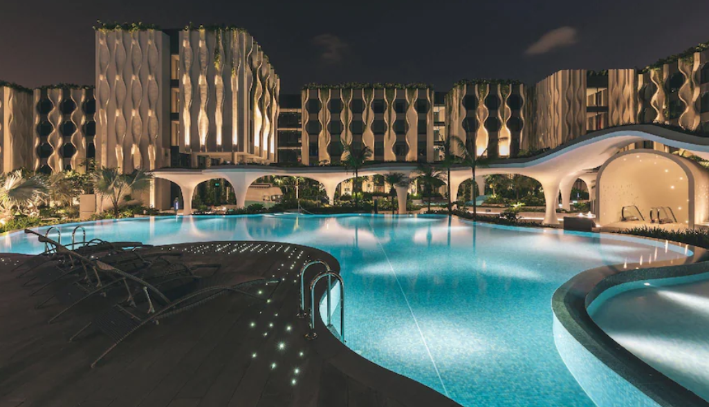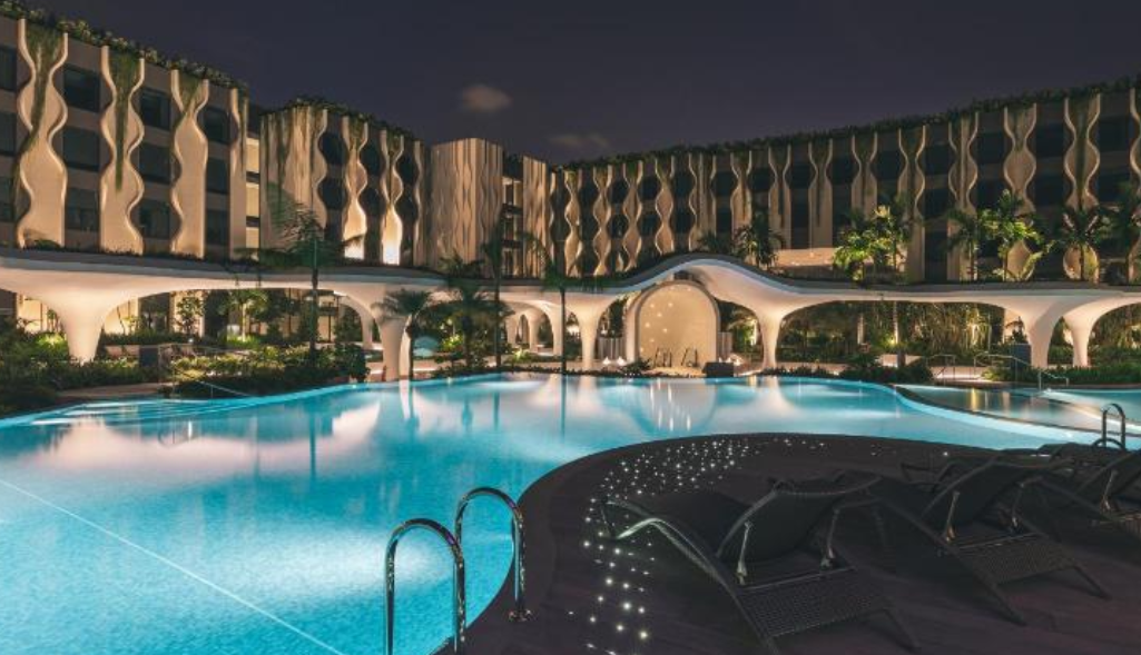 호텔의 디자인은 현대적이면서도 열대적인 분위기를 반영하고 있어, 휴양지에서의 여유로운 시간을 즐기기에 적합합니다. 넓고 밝은 로비, 편안한 객실, 다양한 수영장 옵션 등이 특징입니다. 특히, 여러 개의 수영장은 어린이부터 어른까지 모든 연령대가 즐길 수 있도록 설계되어 있으며, 물놀이를 좋아하는 가족들에게 완벽한 선택지입니다.