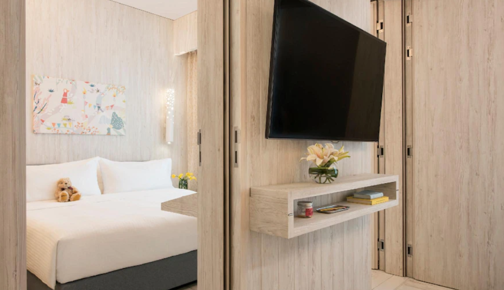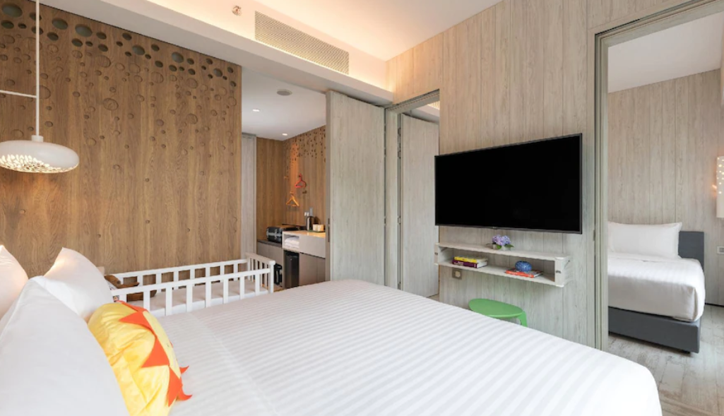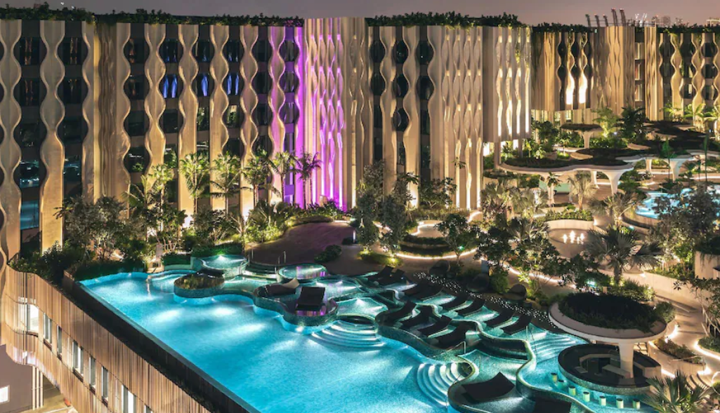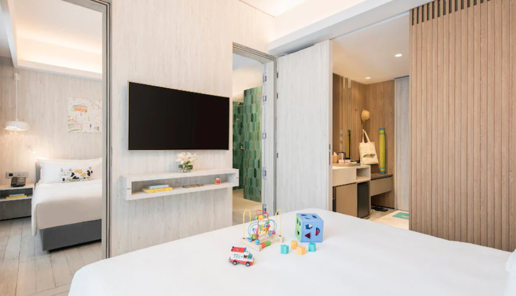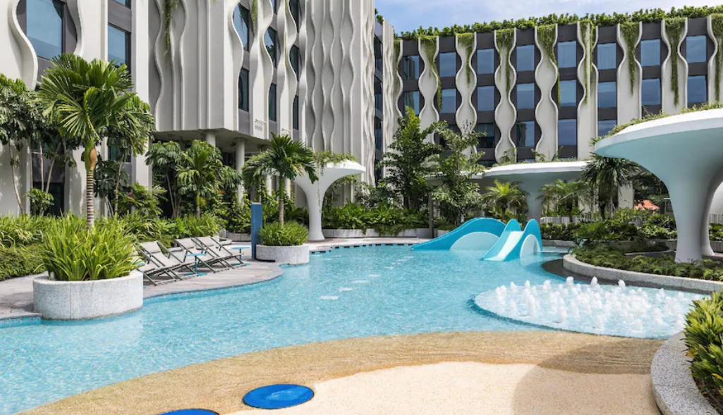 싱가포로여행의 여러모로 활용도 좋은? 최신호텔로 누구나 쾌적하게 지내기 좋은 깨끗함의 빌리지 호텔 센토사 바이 퍼 이스트 호스피탈리티 (Village Hotel Sentosa by Far East Hospitality)는 객실 두개를 커넥팅룸 형식으로 쓸 수 있어서 좋으며 유아 풀장도 여러개고 아이들을 위한 배려가 곳곳에 묻어나는 곳으로 가족여행으로도 그만이며, 분위기 좋고 예쁜 수영장 좋고 커플여행, 친구들과의 여행 목적 등 모든 조건에 부합합니다.