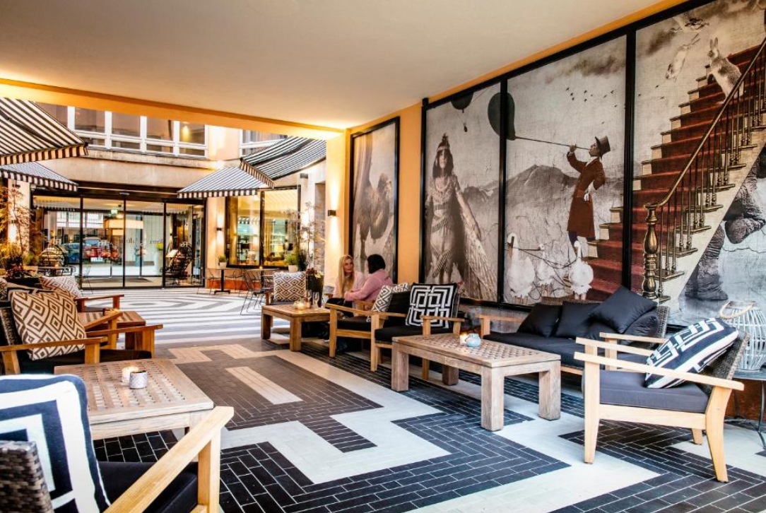 호텔 디자인은 멋지고, 훌륭한 아침 식사가 제공되며, 휴식을 취할 수 있는 야외 안뜰과 라운지 공간도 있습니다. 유일한 단점은 방이 좀 답답하다는 점이에요.