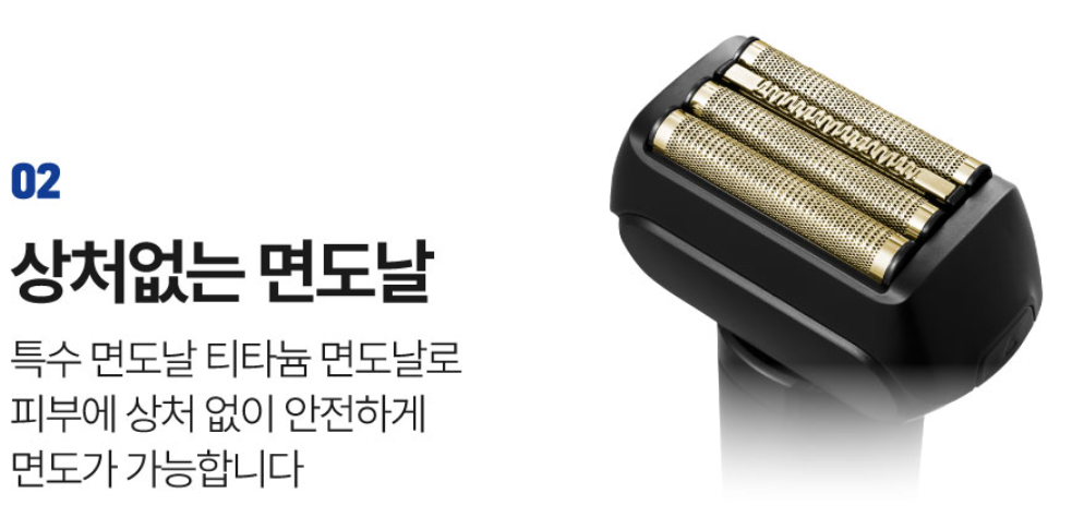 티타늄 블레이드: 티타늄은 매우 내구성이 뛰어나고 가벼운 재료로, 이 면도기 블레이드의 재료로 사용되었습니다. 이 블레이드는 매우 날카로워 깔끔한 면도를 제공합니다.