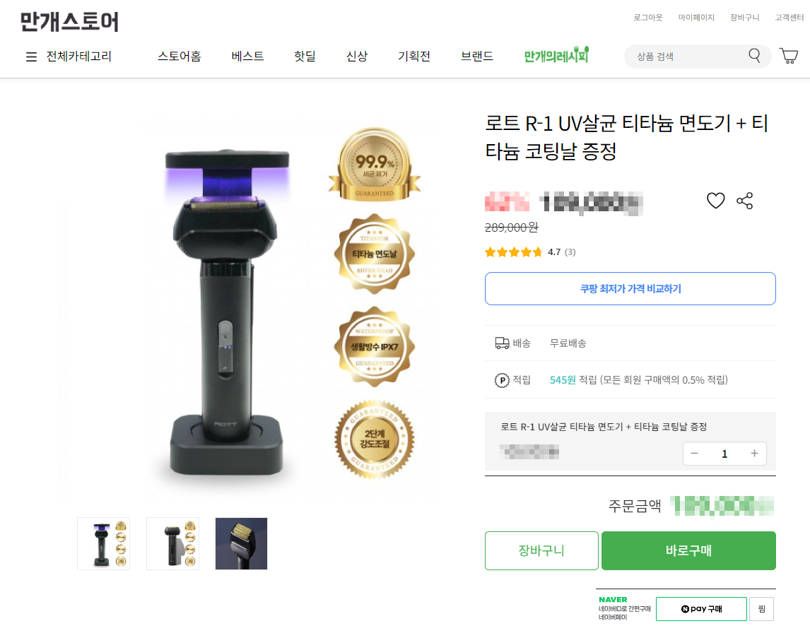 로트 티타늄 면도기는 현재 저렴한가격에 판매하고 있어 더욱 매리트 있는 제품으로 할인이벤트는 기간에 따라 조기마감할 수 있고 예고없이 가격이나 할인율이 변동될 수 있습니다. 망설이면 비싸져요~ 지금사면 저렴하게 득템할 찬스입니다.