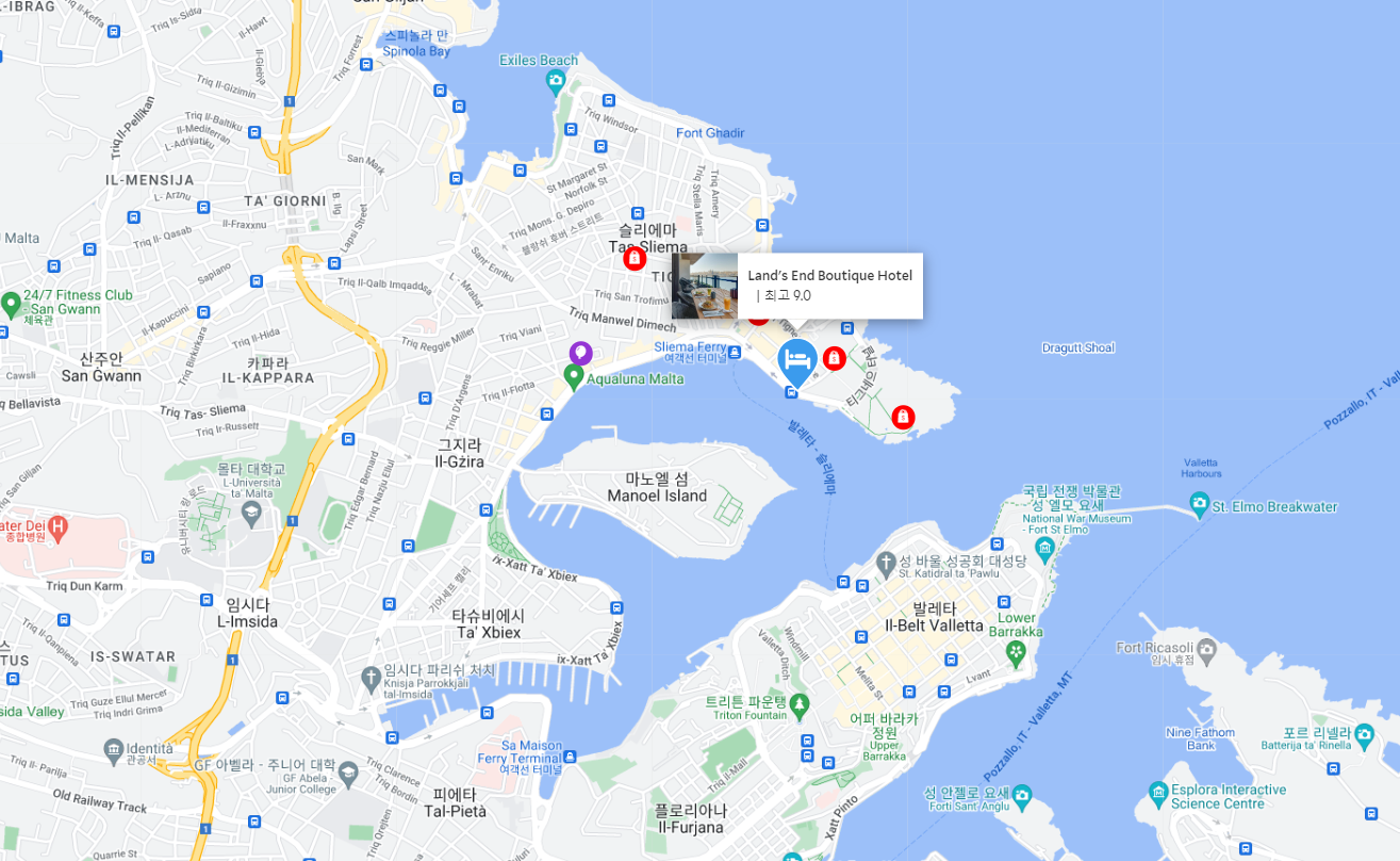 몰타자유여행에 추천하는 숙소 랜즈 엔드 부티크 호텔(Land's End Boutique Hotel)은 몰타의 슬리에마 지역에 위치하고 있습니다. 이 지역은 몰타의 아름다움을 가장 집약적으로 보여주는 곳으로, 파란 바다와 개성 넘치는 건축물들, 그리고 활기 넘치는 문화가 조화를 이루는 곳입니다. 이와 같은 슬리에마의 중심부에 위치하고 있는 Land's End Boutique Hotel은 몰타를 방문하는 여행객들에게 최상의 체험을 제공하고 있습니다.
