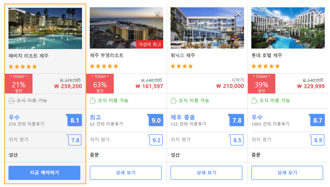 해비치 리조트 제주 (Haevichi Resort Jeju)의 최저 가격대는 아고다에서 할인특가 가격으로 매일매일 변동되며 20만원대부터 다양하게 형성됩니다. 아고다 최저가를 확인하시려면 아래 링크를 누르시면 원하는 날짜의 가격대를 자세히 보실 수 있습니다.
