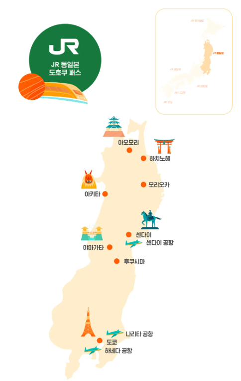 JR 동일본 도호쿠 패스 / 일본 도호쿠 지역 아오모리현, 이와테현, 미야기현, 아키타현, 야마가타현, 후쿠시마현 무제한 열차 티켓