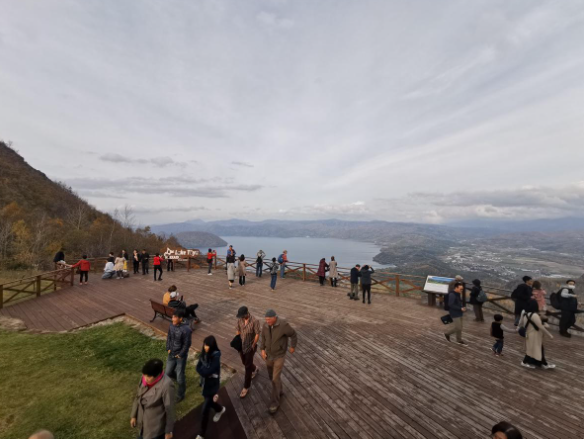 우수잔 로프웨이를 타고 올라간 후 만나게 되는 전망대에서는 도야호를 비롯한 주변 경관을 조망할 수 있습니다. 또한 활화산인 우수잔의 분화구도 가까이에서 볼 수 있어, 자연의 웅장함을 느낄 수 있습니다.