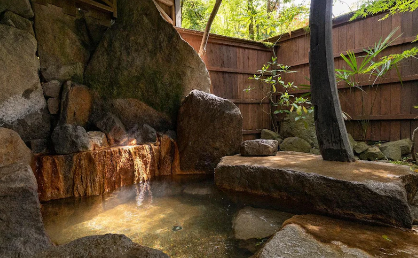이 료칸은 자연 온천을 제공합니다. 온천은 건강과 아름다움에 좋다고 알려져 있으며, 특히 피부 건강에 도움이 됩니다.
