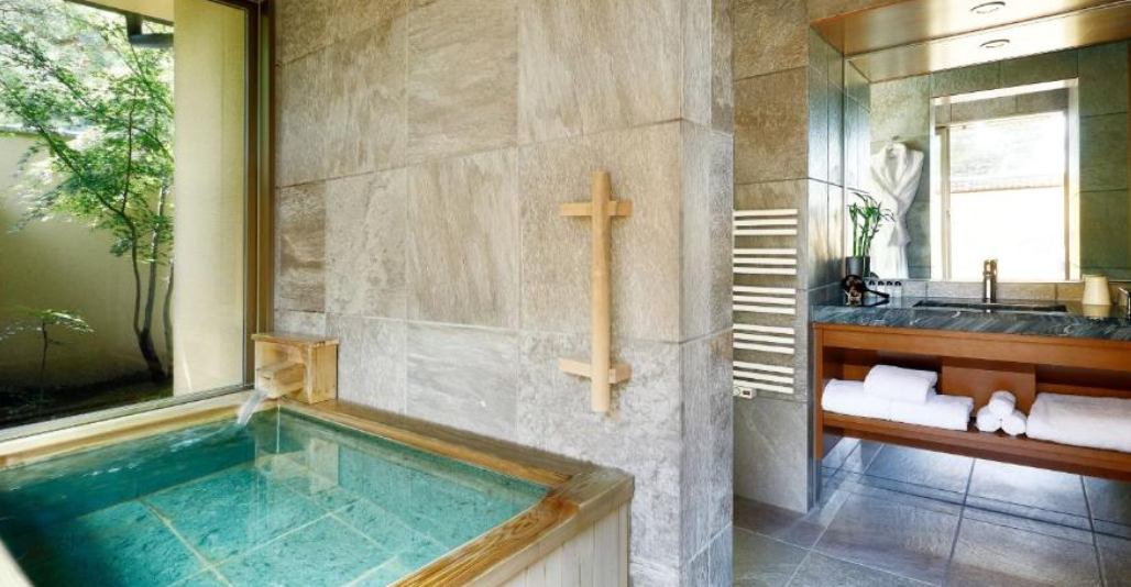 스이란, 어 럭셔리 컬렉션 호텔, 교토는 아라시야마 지역의 자연 그대로를 즐길 수 있는 온천을 제공합니다. 이 호텔의 온천은 아라시야마의 자연 경치를 바라보며 휴식을 취할 수 있는 공간으로, 일본의 전통적인 온천 문화를 체험할 수 있습니다.