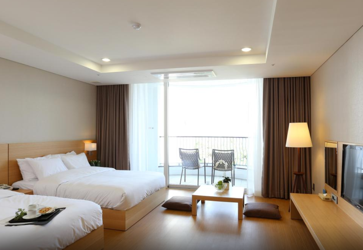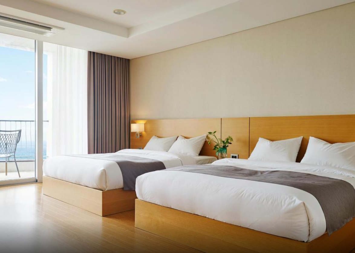 더블침대가 2개나 있어서 맘껏 편하게 썻습니다. 발코니에서 바로 바다가 보여서 좋았고요. 길 하나만 건너면 바로 바닷가여서 좋았어요.