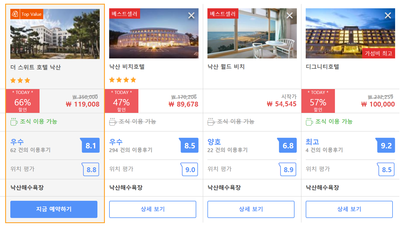 더 스위트 호텔 낙산 (The Suite Hotel Naksan)의 최저 가격대는 아고다에서 할인특가 가격으로 매일매일 변동되며 20만원대부터 다양하게 형성됩니다. 아고다 최저가를 확인하시려면 아래 링크를 누르시면 원하는 날짜의 가격대를 자세히 보실 수 있습니다.
