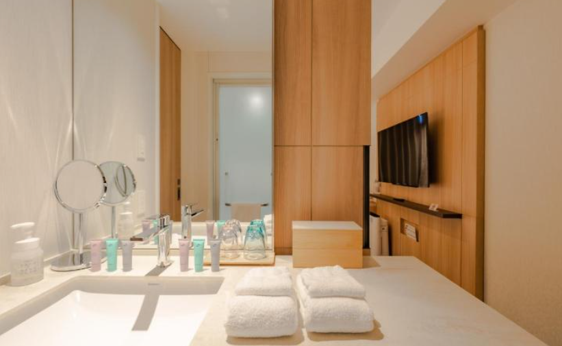 신축이라 전체적으로 룸컨디션이 아주 좋아요 아무래도 일본호텔답게 넓은 방을 골랐음에도 불그하고 아담한면이 없지않아 있지만, 캐리어 두개펼쳐도 성인2명이서 충분히 생활하기 편했던 것같아요! 다만 대욕장은 굳이..탕엔 들어가지않는게 나을듯합니다...물이계속 나오는 것도 아니고 순환되지않는지 불순물들이... 탕있는 방이시라면 어메니티에 포함된 핑크솔트 뿌려서 개인 욕실에서 하는게 훨 쾌적합니다:)