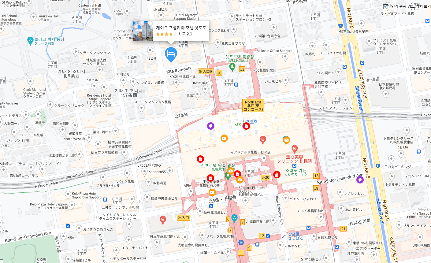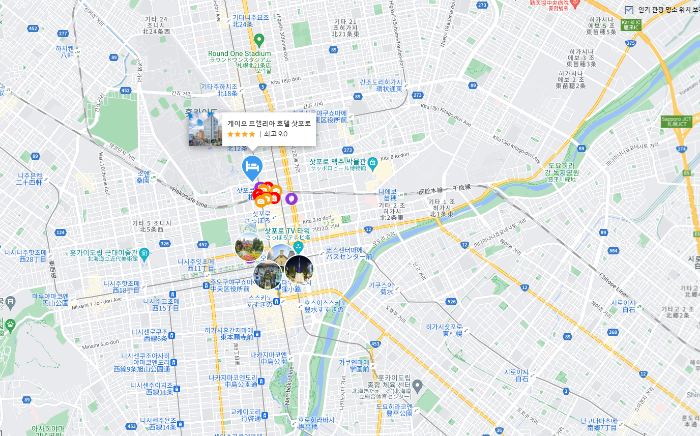 우선은 삿포로역에서 가깝습니다. 5분정도 걸립니다. 처음엔 삿포로역근처가 이동하기 편할것이라 생각하고 예약했는데, 스스키노역, 오도리 공원 등 도보로 20-25분정도 걸린 점이 아쉽습니다. 서비스, 시설 등 모든 것이 좋았으나 다음에 삿포로 여행을 간다면스스키노역 근처가 시내이동시 편할것 같긴합니다.