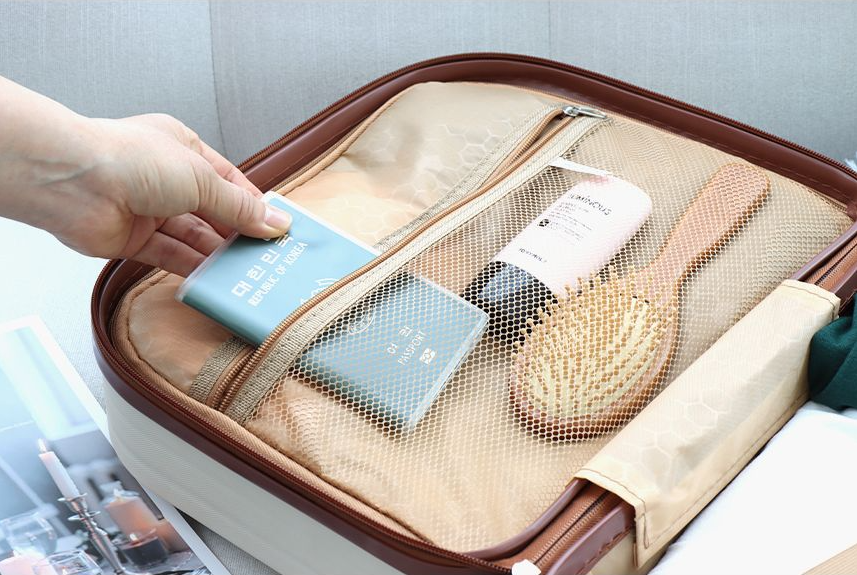 캐리어 내부 매쉬 지퍼 설계로 공간활용이 뛰어나 말끔하게 보관이 가능합니다.