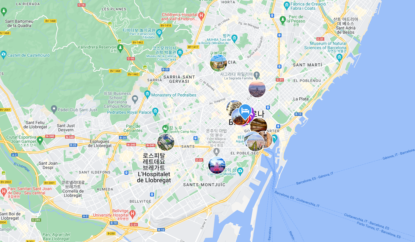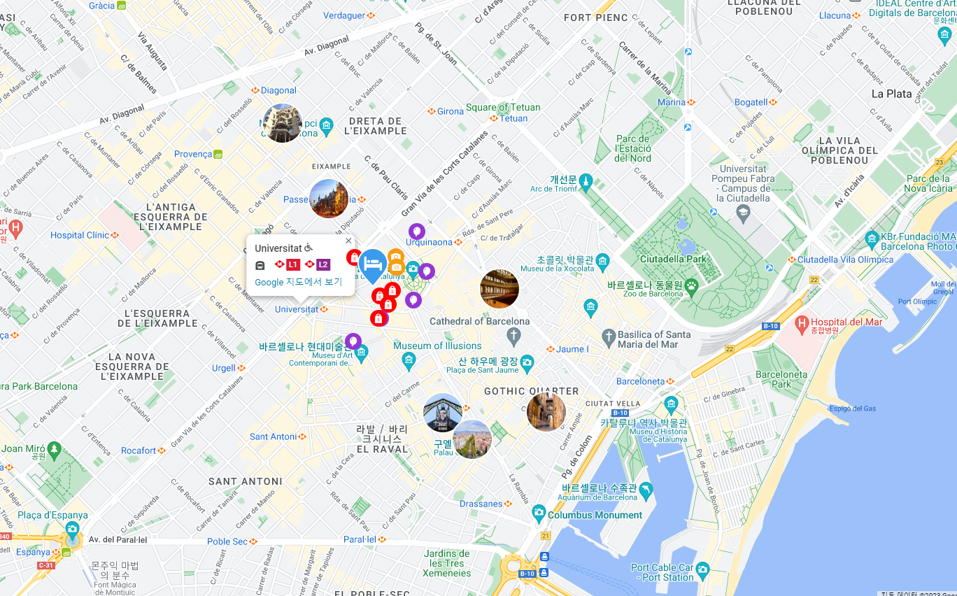 가우디투어와 몬시투어 신청했는데 집합장소가 숙소와 가까워서 좋고 까탈루냐 광장옆에 있어서 관광과 식사ᆢ쇼핑ᆢ 공항갈때 정말 좋았습니다ᆢ숙소도 넓고 깨끗해서 스페인여행에서 같은값의 숙소중 젤 좋았다는.