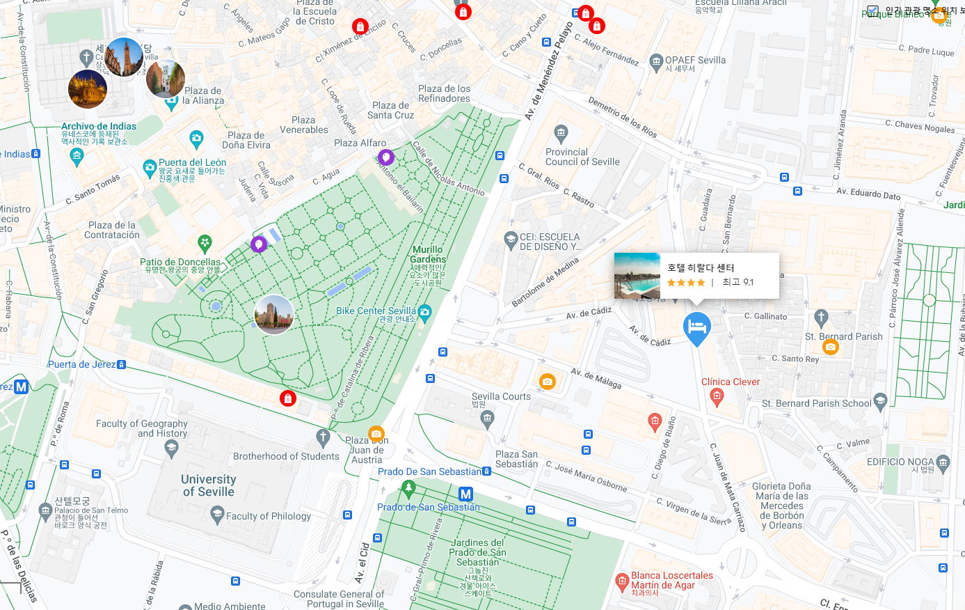 세비야 호텔 히랄다 센터(Hotel Giralda Center)의 최저 가격대는 아고다웹사이트에서 할인특가 가격으로 매일매일 변동되며 10만원대부터 다양하게 형성됩니다. 날짜별로 매일 가격이 다르므로 아고다웹사이트 최저가를 확인하시려면 아래 링크를 누르시고 원하는 날짜의 가격대를 선택해야 정확한 가격을 자세히 보실 수 있습니다.