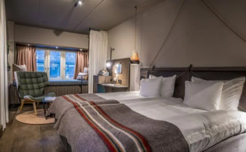 독특한 디자인과 분위기: 이 호텔은 도시 탐험가들을 위한 캠프 컨셉으로 설계되었습니다. 객실과 공용 공간 모두에서 자연 소재와 모던한 디자인이 조화를 이루어, 편안하면서도 모험적인 분위기를 조성합니다. 호텔 내부 곳곳에 설치된 아트워크들은 스톡홀름의 문화적 특성을 반영하며, 방문객들에게 영감을 줍니다.