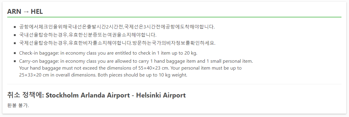 스톡홀름에서 헬싱키로 가는 교통편 예약시에는 핸드폰번호, 이메일, 이름, 성, 성별, 생년월일, 국가, 여권번호, 생년월일을 입력하고 추가수화물을 선택하시면됩니다. 기내수화물은 무료, 추가수화물 23kg은 $15.13, 46kg은 $45.5가 추가됩니다. 그리고 여행자 보험은 선택사항입니다.